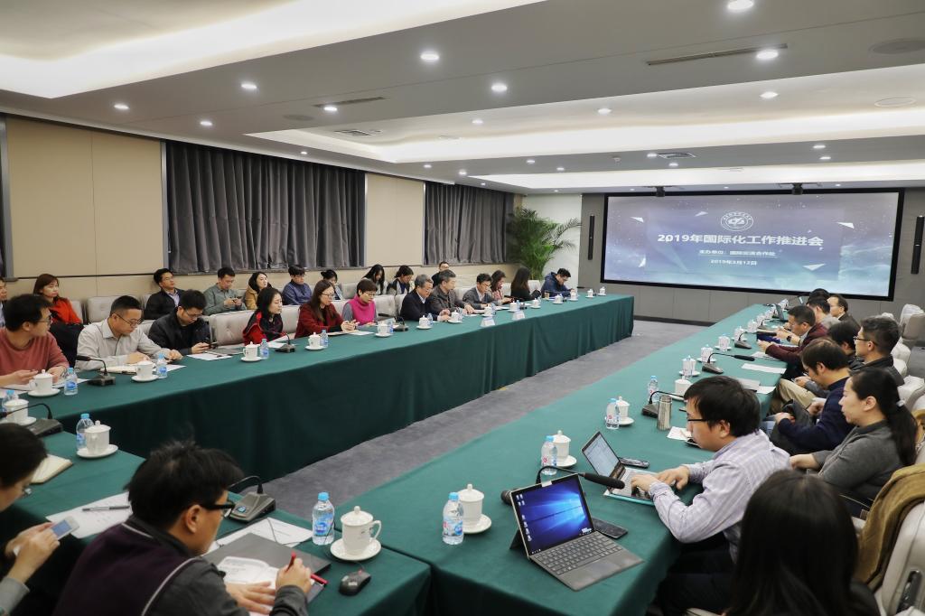 3月12日下午,我校2019国际化工作推进会在如心会议中心召开。会议由黄海军副校长主持,国际交流合作处负责人,各学院外事工作负责人、外事秘书参加会议。