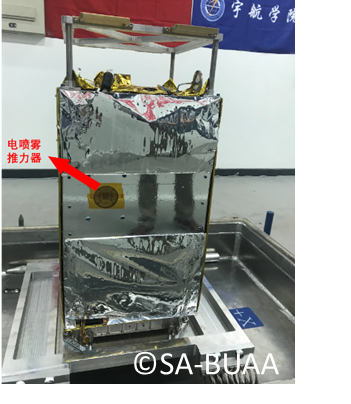 2023年2月25日,由北航宇航学院“先进空间推进”研究团队研制的国际首个容性储电离子液体电喷雾推进系统在轨成功应用500天。该推进系统(ILT-50)作为亚太空间合作组织大学生小卫星-1(APSCO-SSS-1)的离轨动力装置,于2021年10月14日由“长征四号丁”运载火箭在太原卫星发射中心成功发射,随卫星进入高度517km的太阳同步轨道。
