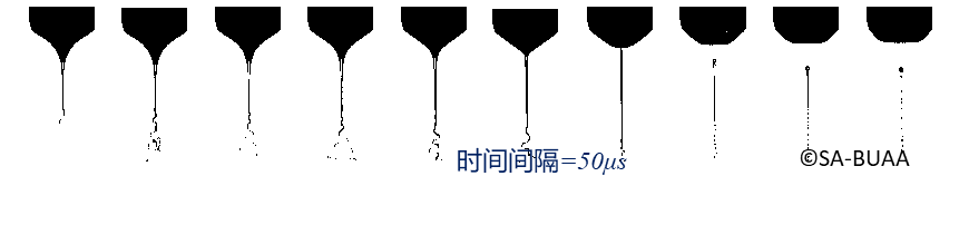 离子液体电喷雾推力器射流时域变化图和泰勒锥流场图