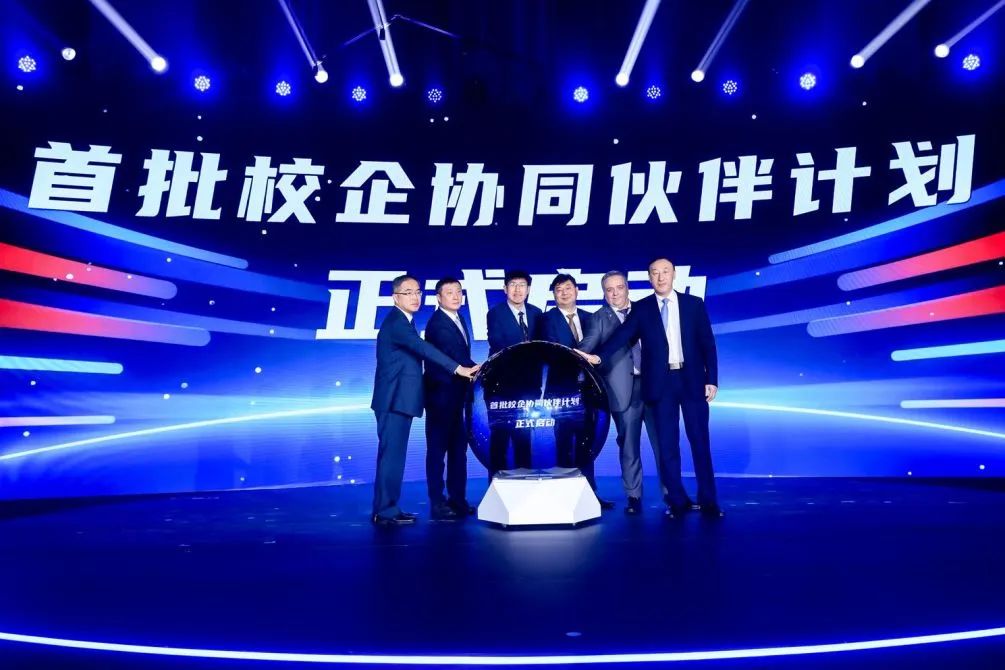 首批校企合作伙伴代表中国商飞、南方航空、长龙航空、鸶鹭商务航空四家企业负责人与北航校长助理赵巍胜、中法航空研究院党委书记孙青峰共同启动校企协同伙伴计划。