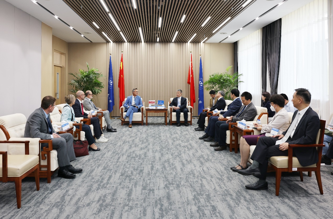 哈盖对北航的热情欢迎表示感谢,并介绍了INSA集团整体情况及近年来发展状况。他表示,INSA与北航同为年轻且卓越的大学,两校在人才培养、社会服务、全球治理等方面理念相通,在工程师培养领域有诸多共识,这是两校持续合作的不竭源泉,也为两校拓展下一步合作提供了坚实基础。INSA十分期待与北航合作更进一步,希望两校以教育合作为牵引,全方位带动全方面的深度合作,携手应对全球挑战,推动社会科技进步与发展,为促进中法科教交流打造更广阔的平台。