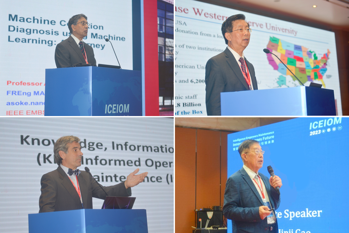 英国皇家工程院院士、布鲁内尔大学AsokeK. Nandi教授,国际电器与电子工程学会会士、美国机械工程师学会会士、美国凯斯西储大学Robert X. Gao教授,Humboldt Research Award获得者、米兰理工大学Enrico Zio教授,中国工程院院士、北京化工大学诊断与自愈工程研究中心主任高金吉教授,分别作了题为“Machine Condition Diagnosis using Machine Learning: A Journey”、“Intelligent Maintenance through Big Data Analytics”、“Knowledge, Information and Data (KID)-Informed Operation and Maintenance (IOM)”、“Artificial self-recovery enables intelligent maintenance development to equipment autonomous health”的大会邀请报告。大会邀请报告分别由西安交通大学严如强教授、华南理工大学李巍华教授主持。