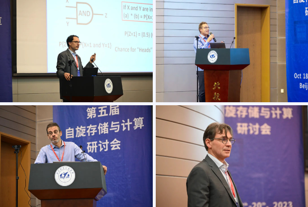 在为期三天的研讨会中,三十余位国际专家展示了他们课题组的最新研究成果。报告主题涵盖了自旋电子学在存储与计算等方向的研究热点,包括基础理论研究和工业应用。Gerrit E.W. Bauer教授(东北大学、中国科学院大学)、Lin Chen教授(慕尼黑工业大学)、Abdelmadjid Anane教授(巴黎萨克雷大学)、Nicolas Vernier教授(巴黎萨克雷大学)和Jason Robinson教授(剑桥大学)等分享了关于磁性金属和半导体在微观表征和物理特性方面的最新进展;Giovanni Finocchio教授(梅西纳大学)、Ahmad Awad教授(哥德堡大学)和Hyunsoo Yang教授(新加坡国立大学)介绍了自旋电子学器件的新奇现象以及在类脑计算等领域的广阔应用前景。Kevin Garello研究员(法国Spintec研究所)和Jérémy Létang研究员(奥地利Silicon实验室)则从先进技术研发的角度介绍了自旋存储芯片和传感器的工艺发展及丰富研究手段。