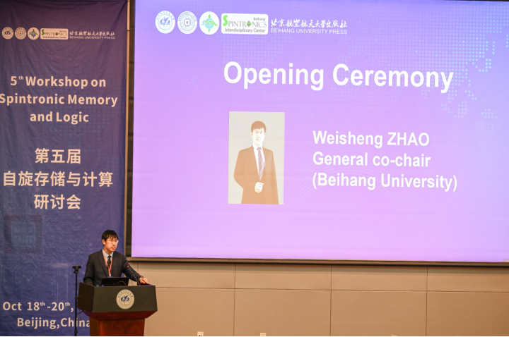 赵巍胜副校长主持开幕仪式并介绍北航自旋电子研究发展进程