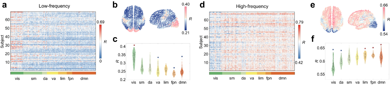 图2低频和高频特征模对大脑结构-功能耦合的区域异质性作用