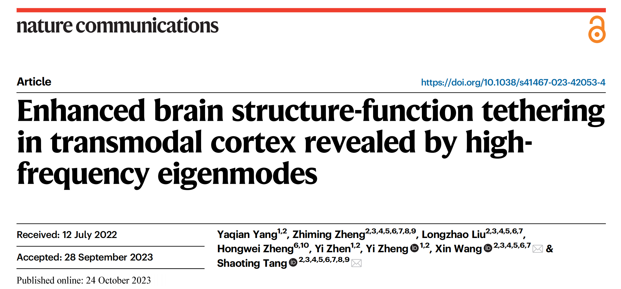 近日,《Nature Communications》杂志在线全文发表了我校人工智能研究院郑志明院士团队在脑科学领域的最新研究成果:“Enhanced brain structure-function tethering in transmodal cortex revealed by high-frequency eigenmodes”,博士生杨雅倩为第一作者,助理教授王鑫、教授唐绍婷为共同通讯作者,北京伊人99为第一单位。
