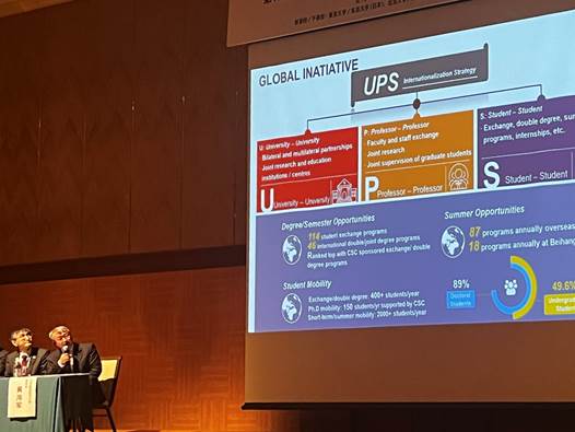 黄海军副校长以《后疫情时代北航国际化发展》为题做专题发言,阐述北航在新时期国际化发展的思考及实践,分享对日合作成果,提出北航与日本高校在科研平台建设,人才培养等领域加强合作的建设性倡议,希望中日高等教育携手共进,为全球高等教育发展贡献力量。