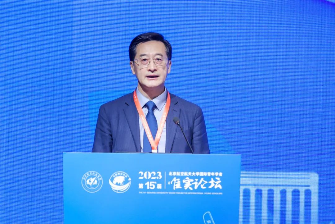 王云鹏在致辞中首先对参加本届论坛的海内外青年才俊表示热烈欢迎和诚挚问候。他表示,党的二十大报告将教育、科技、人才一体部署,突出“人才是第一资源”,实施人才强国战略,发出了建设世界重要人才中心和创新高地的时代强音。人才聚则事业兴,北航始终把人才作为立校之本、强校之源,连续7年举办十五届唯实论坛,吸引大批优秀青年人才共襄盛会、加盟北航,带动学校事业走上高质量发展的快车道。七年来,学校依托人才建强学科、凭借人才培育人才、依靠人才矢志创新、助力人才内生成长,取得一系列显著成绩。这充分体现出,人才是支撑学校事业发展的关键力量和战略资源,必须以更大的胸怀、下更大的功夫引才育才,汇聚更多更优秀的人才加入到学校中国特色、世界一流大学建设的伟大事业中来。