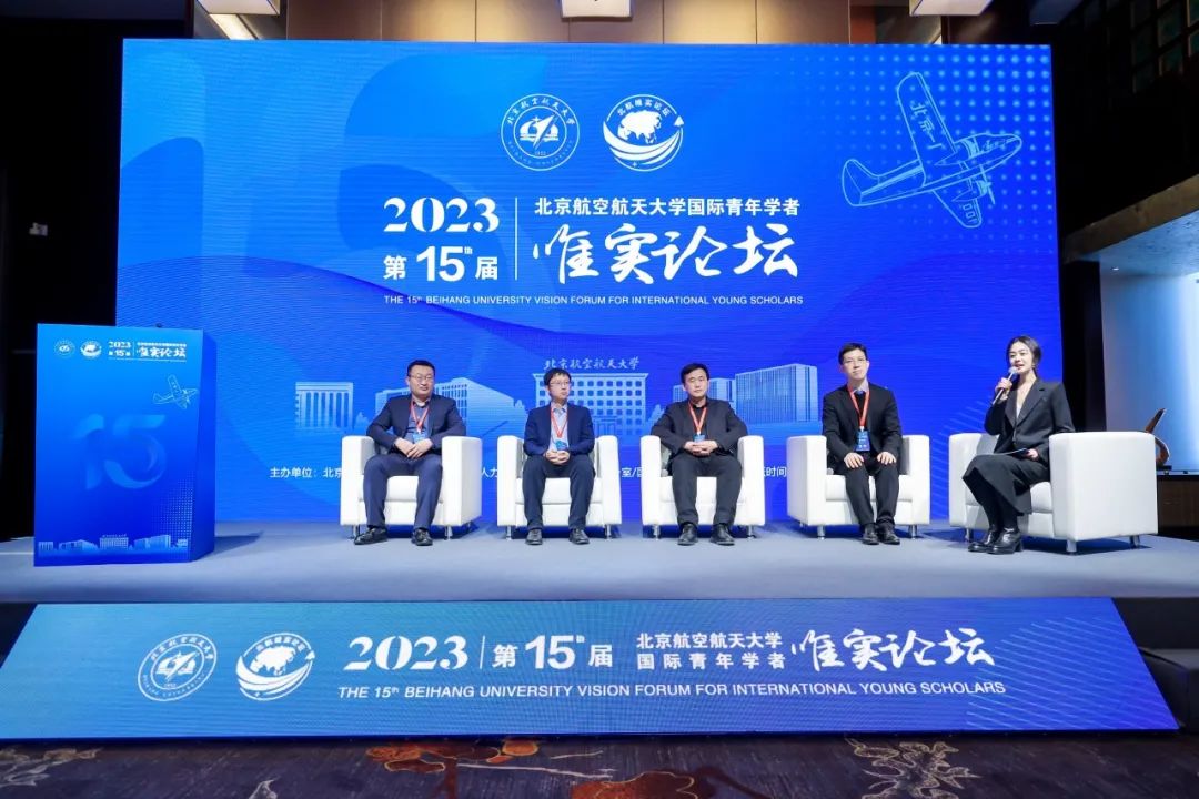 在交流访谈环节,研究生院常务副院长兼综合管理处处长吴江浩教授、科学技术研究院副院长兼前沿创新处处长、国家级领军人才田大新教授、计划财务部学科发展办公室副主任赵子华教授结合个人工作体会,分别介绍了学校在研究生招生培养、科研创新平台保障、学科建设发展布局等方面的政策举措,国际交叉科学研究院教授、国家级领军人才潘曹峰分享了自己海外归国、加入北航的初心选择和感受体会,为参会的青年学者答疑解惑、指引方向。