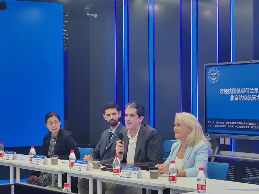 随后,航空学院飞机系副主任宋磊副教授详细介绍了航空学院的发展历程、人才培养与科学研究等方面的整体情况,特别是介绍了他所指导的北航航模队目前科研实践工作开展情况,他希望能够与法航-荷航集团在教育资源分享、学生实践项目与科研项目共建等方面有所合作。