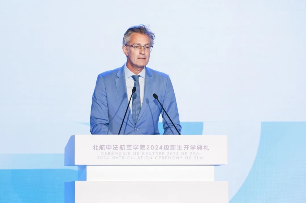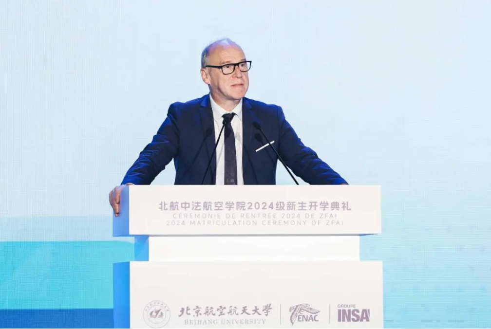 哈盖表示,在过去的18个月里,法国国立应用科学学院集团与北航携手并进,致力于构建并深化两校间人才培养、科学研究等全方位合作,在杭州国际校园迈出了坚实的步伐。希望通过深化教育和科学外交,进一步加固中法两国人民之间的友谊桥梁,促进双方在碳中和目标下的深度合作,共同迈向2050年的可持续发展未来。尚苏指出,法国国立民航大学在国际航空教育界享有盛誉,被公认为欧洲顶尖航空院校,与北航的携手意味着学院的教育模式融合了中法两国顶尖的教育资源,将赋予同学们航空业广泛认可的专业能力、一流素养和国际视野。希望同学们保持旺盛的好奇心、开放包容的心态、谦逊的态度以及不懈的创新精神,以解决复杂问题为己任,推动社会向更加可持续的方向发展。