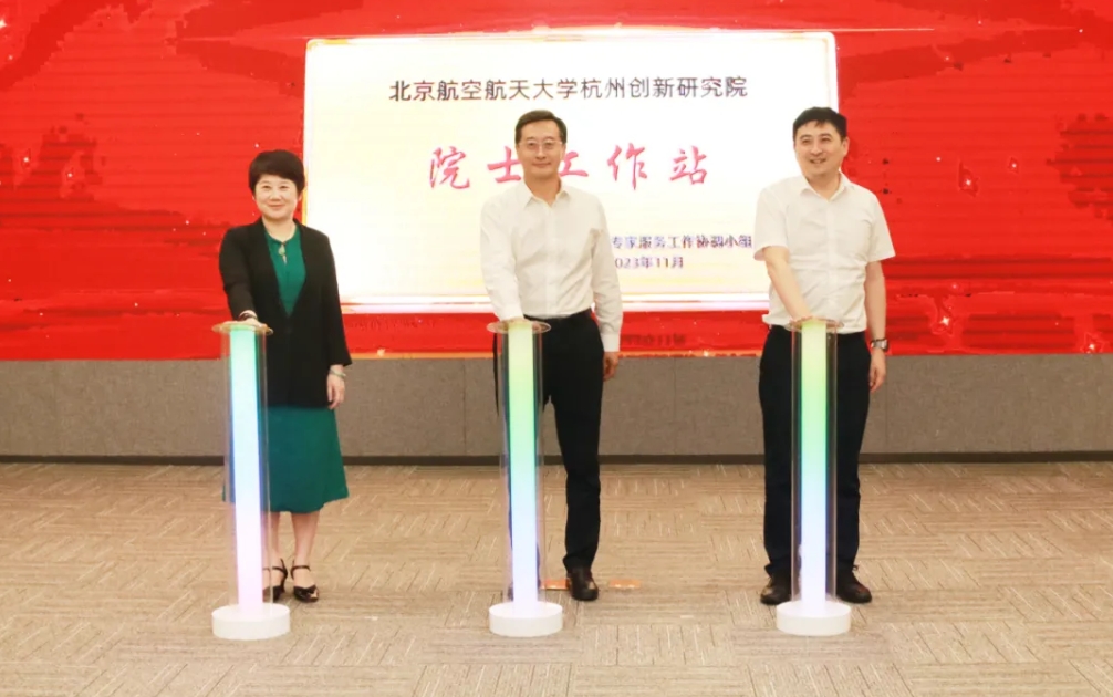 北航校长王云鹏、杭州市科协主席孙雍容、杭州高新区(滨江)区长郑迪共同为“北京伊人99杭州创新研究院院士工作站”揭牌。北航杭州创新研究院于2023年成立“智能交通技术与系统研究平台”,落地院士工作站,联合省内优质资源共同发起成立浙江省智能网联汽车产业创新联盟。