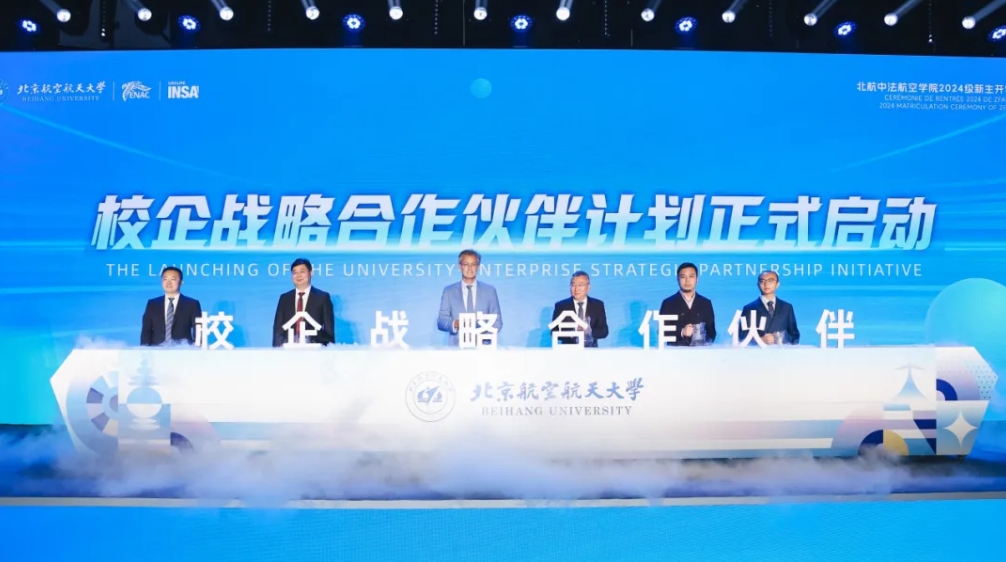 达索系统、苏泊尔、杭州迅蚁网络科技有限公司、华数集团等四家企业负责人与法国图卢兹国立应用科学学院校长贝尔唐·哈盖、杭州北航国际创新研究院(学院)党委书记孙青峰共同启动校企战略合作伙伴计划