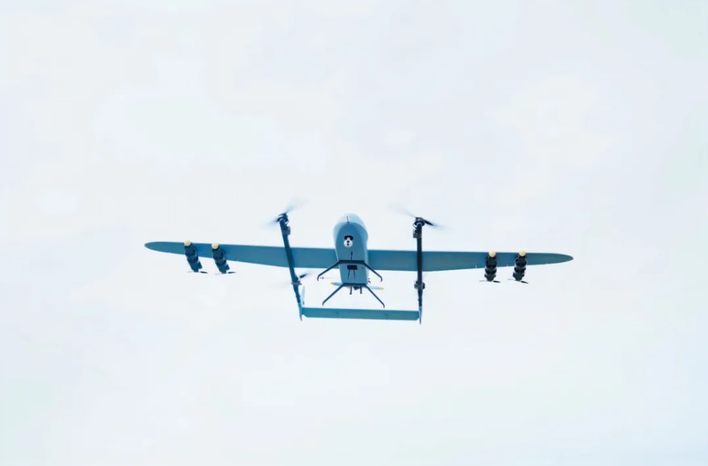 在北航杭州国际校园南区田径场,王云鹏发出“开始起飞”的指令,“天目山二号”全球首款垂起固定翼子母无人机缓缓升空,翱翔在蓝天。