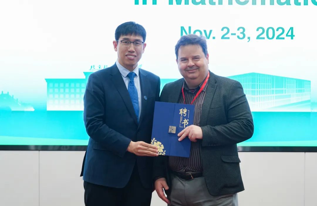 报告交流环节,法国巴黎萨克雷大学JacquesPeyrière教授主讲《Hardy空间的多尺度分解》报告,研究在单位圆盘或上半平面中全纯函数的正交展开项——Blaschke积,提出了通过构造上半平面中的全纯小波来获得明确的相位解绕的方法。法国国家科学研究中心DavidSauzin研究员主讲《巴黎/北京的椭圆动力学和数学物理领域最新研究进展》报告,回顾了中法两国科学家在数学物理领域和动力系统领域的合作历程,并分享了有关最新进展。加拿大劳里埃大学IliasKotsireas教授主讲《构造性组合数学中的概念、问题和工具》报告,提供关于构造性组合数学的自包含介绍,并用具体概念示例说明如何将结构引入问题中。并介绍了用此方法解决了构造性组合数学中的几个具有挑战性的问题的历程。德克萨斯大学冯兆生教授主讲《具有范德波尔边界条件的波动方程的混沌振动》报告,使用特征线方法推导出由非线性边界条件引起的非线性反射关系,由此开发了定性和数值技术来处理三次非线性问题,并通过计算机图形展示了混沌振动的数值模拟和可视化。法国国家科学研究中心Philippe Marchal教授主讲《随机格点多面体》报告,针对大型超立方体[0, 1]内的一维和二维波动方程,建立了涉及二维布朗桥和随机三次曲线的漂移项的极限定理。法国奥尔良大学AthanasiosBatakis教授主讲《群体的力量》报告,研究了高度为m的加尔顿-沃森树当m趋近于无穷时根节点观点分布的渐近行为。法国图卢兹第三大学VincentFeuvrier教授主讲《极小曲面》报告,介绍了Plateau问题的最新求解策略,建立了各种制定约束方式之间的下确界等式。法国国家信息与自动化研究所Matias Bender助理研究员主讲《使用行列式公式解决多项式系统问题》报告,介绍了符号-数值算法使用代数几何技术将问题简化为线性代数问题的思想方法,并展示了解决结构化多项式系统问题的高效算法。瑞士弗里堡大学张翼成教授主讲《人工智能变革的下一步:Personal Assistant的深刻影响》报告,从数学算法的角度介绍了人工智能时代Personal Assistant对日常生活的影响。北京伊人99副教授牟晨琪、黄博,哈尔滨工业大学副教授胡怡宁,广西民族大学副教授杨静,华中科技大学讲师陈欢,巴黎第九大学万艺君博士分别主讲报告,讲述最新研究成果。