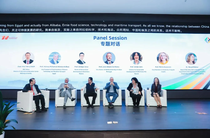 在圆桌对话环节,埃及阿拉伯科学技术和海运学院副校长Alsnosy Mohamed Alsnosy Balbaa,墨西哥克雷塔罗航空大学校长Enrique Sosa,葡萄牙新里斯本大学副校长João Amaro de Matos,巴黎高等物理化工学院副校长Annie Colin,经合组织中国经济政策研究室、经合组织中国平台主任Margit Molnar,围绕论坛主题开展对话,交流探讨全球创新、协同和包容合作的重要性。圆桌对话由北航国际教育中心兼职教授、IEEE光子学协会主席沈平主持。