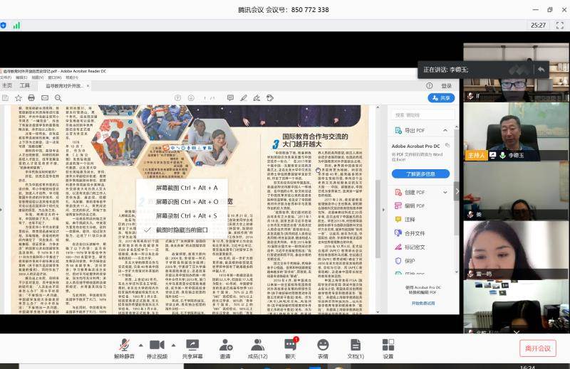 此次党课采取了丰富多彩的学习形式。通过视频分享,大家回顾了42年前教育对外开放大门打开的历程。李老师指出经过40多年的实践检验,教育对外开放已成为我国加快推进教育现代化、建设教育强国的一个有效途径。通过解读《意见》文件精神,大家认识到疫情并不能动摇国家坚持教育对外开放的决心,把握提质增效,推动教育对外开放高质量内涵式发展是未来工作的重点。同时,李老师指出《意见》的出台为我们做好国际交流工作提供了有利指导,在制定“十四五”规划时,要充分汲取《意见》中的重要精神。
